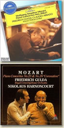 スコダやデームスと共に“ウィーンの三羽烏”と言われ‘00年に急逝した天才的ピアニスト、グルダ。14歳でデビューを果たし、ベートーヴェンやモーツァルト弾きとして一躍世界的な名声を得たものの、ジャズにも傾倒する等の鬼才ぶりを発揮、業界の古い体制に背を向けたことから異端児とも反逆児とも言われました。アルゲリッチやローランド・バティックらの師匠としても有名で、その生き方や演奏スタイルは奔放かつ独創的でもあり眉をしかめる人もいたとか。彼は世界の一流オーケストラとの共演でモーツァルトのピアノ協奏曲を多く録音していますが、その中から特にお勧めの2枚です。アバド率いるウィーン・フィル(表題、ジャケット上)とアーノンクール率いるコンセルトヘボウによるモーツァルト・ピアノ協奏曲、第26番《戴冠式》・第23番【ワーナーミュージック】。人生の辛甘を舐めた老獪なちょいワル爺さんが「モーツァルトはこんな風に楽しく弾くもんだ」と言わんばかりに随所に洒落っけを見せてくれます。その傍らで暖かいまなざしで見守りながら棒を振る偉大な二人の指揮者の姿が目に浮かぶようです。ピアノは勿論愛器ベーゼンドルファー。天高くどこまでも続く青空を思わせる透き通った伸びやかなメロディーラインの高音域の美しさは、モーツァルト音楽に見事にマッチしています。