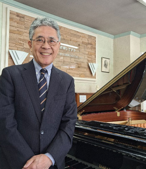 私は熊本市でピアノショップを営む森永功と申します。1976年に創業しましたので、ささやかな中にも49周年を迎えることができました。この間、数千台に及ぶピアノを一般のご家庭や公共施設、学校などに納入させていただきました。私は技術者ではございません。ですのでピアノのメカニックな部分においての解析は得意とはしておりません。レストランに例えれば、オーナーシェフではなくマネージャーと言う立場で、お客様のその日の状態に合わせ、お奨めの料理やワイン選びのお手伝いをし、充分に満足していただけるようご案内させていただくのを役目と考えております。