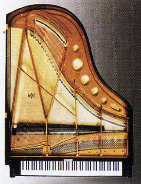ピアノの創世期の頃は半円形であったり四角ばった形状もあったようだが、ある時代からこの形となって久しい。ただアートピアノと言った特殊なデザインや各メーカーやモデルによって微妙な違いはあるものの概ね同じある。さしずめ当時グッドデザイン賞が存在していたら間違いなく受賞していたであろう。