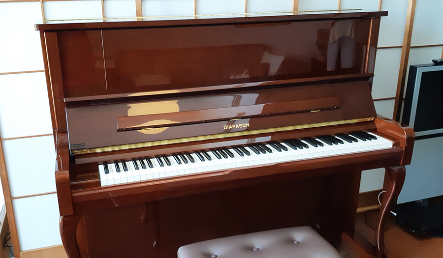 ディアパソンピアノに対する偏ったイメージをお持ちになっておられた方が、このピアノをお弾きになって驚愕されたほどの絶対お勧めのモデルです。軽くもなく、重たくもないほど良いタッチと明るい音色は「とても弾きやすい」と好評で、一度体感されたら、必ずやその魅力に取りつかれてしまうでしょう。 ディアパソンを象徴するこのモデルは、国産唯一の「一本張り」張弦方式を採用。透明で明るい高音域と深い響きの中低音は、他のどのピアノとも違う特有の“味わい”が感じられます。こだわりのあるホンモノ志向の方にお勧めしたいピアノです。
